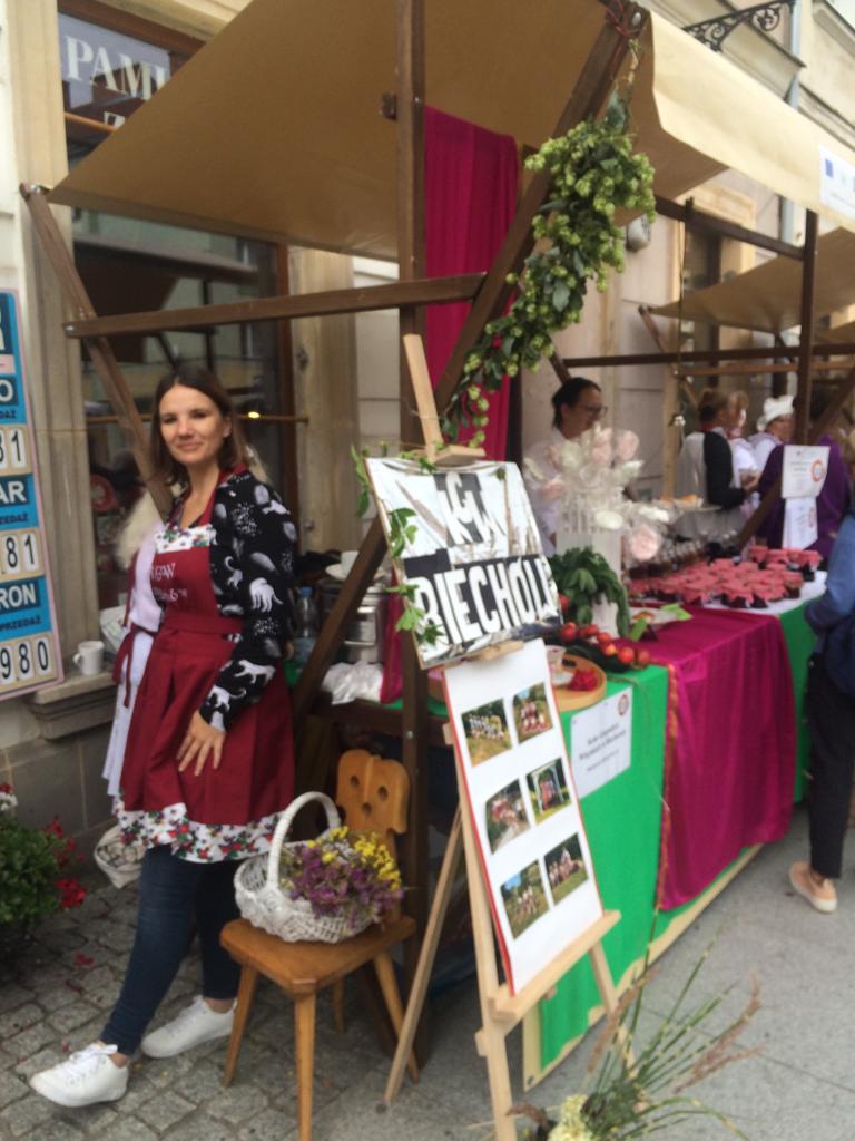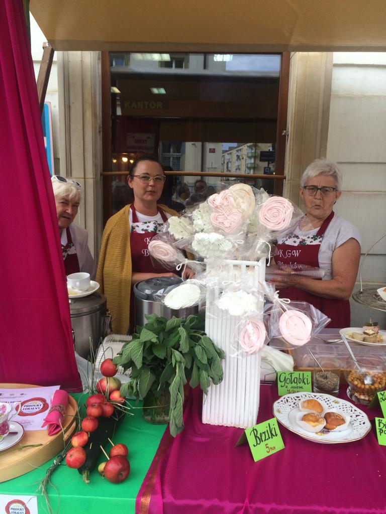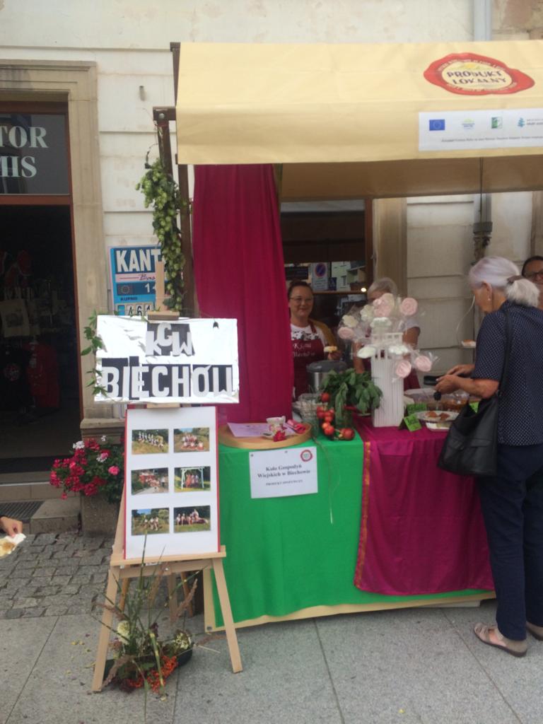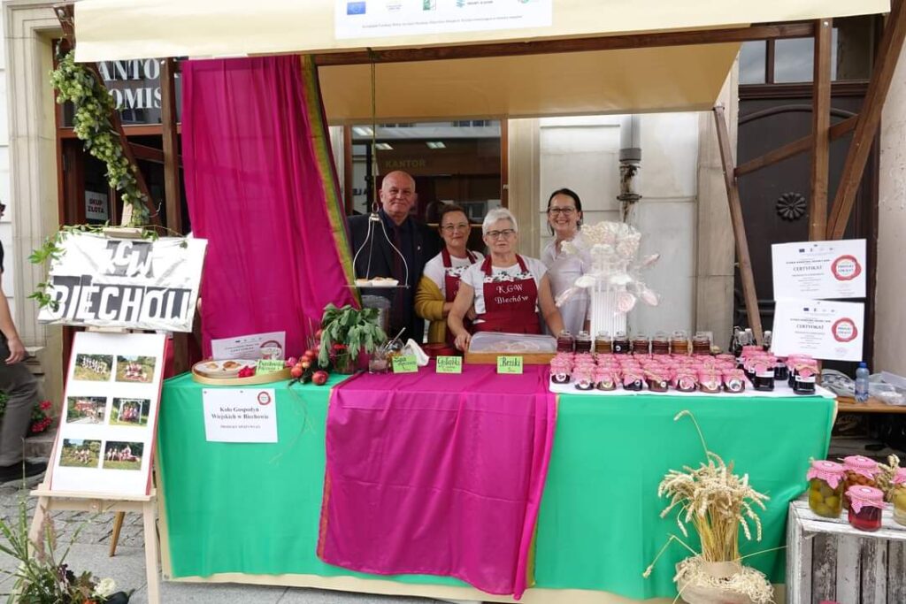 02 . 09. 2022 r – Z okazji otwarcia Centrum Lokalnej Grupy Działania i Dni Miodu w Nysie 2 września Koło Gospodyń Wiejskich z Biechowa przygotowało stoisko ze swoimi produktami lokalnymi : pączkami z różą i gołąbkami ; serwowano również lizaki – beziki i zupę dyniową .
