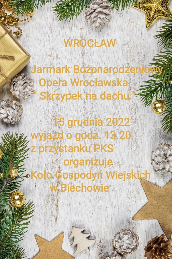 15 grudnia 2022 KGW z Biechowa było na Jarmarku Bożonarodzeniowym i w Operze Wrocławskiej na spektaklu ” Skrzypek na Dachu „